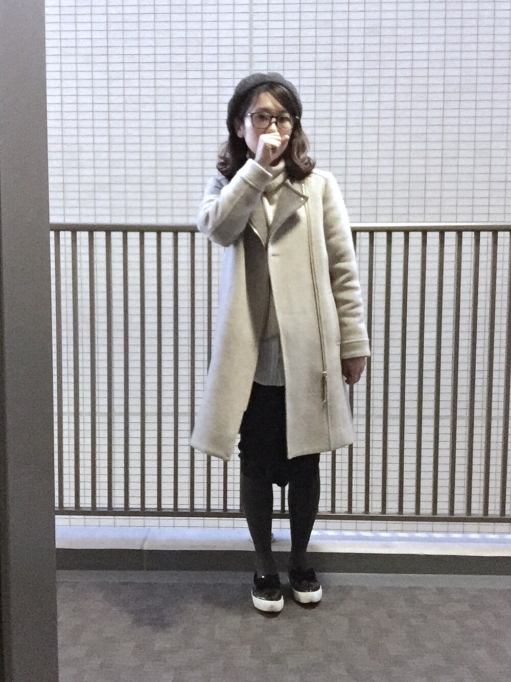 オフホワイトのタートル& オフホワイトのコート& ネイビースカート& グレータイツ&グレーベレー ちょっとグラデなコーデです。 以前ベレー帽を被っていたら、母に『ジャイ子』みたいw と言われ若干凹んだのですが 今回このベレーと眼鏡の着画を見てみたら もはや手塚治虫先生ですね……… 手塚先生好きだからいいか。オマージュ的な😭