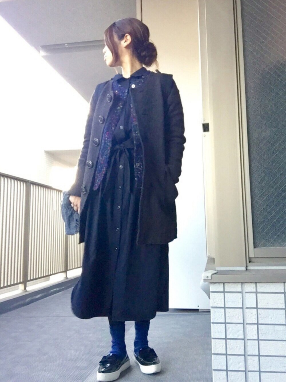 おはようございます! 今日は朝より夜の方が寒いらしいですね。 寒暖の差がひどいので皆さんご注意を🙀 今日はネイビーのシャツワンピとパーリッシィのネイビーのミックスニットに、これまた無くなったヘムワークってブランドのコート。 ノーカラーコートが着回しやすくて何年も着ちゃってます。 あとは、夜の寒さ対策にレギンス&靴下〜