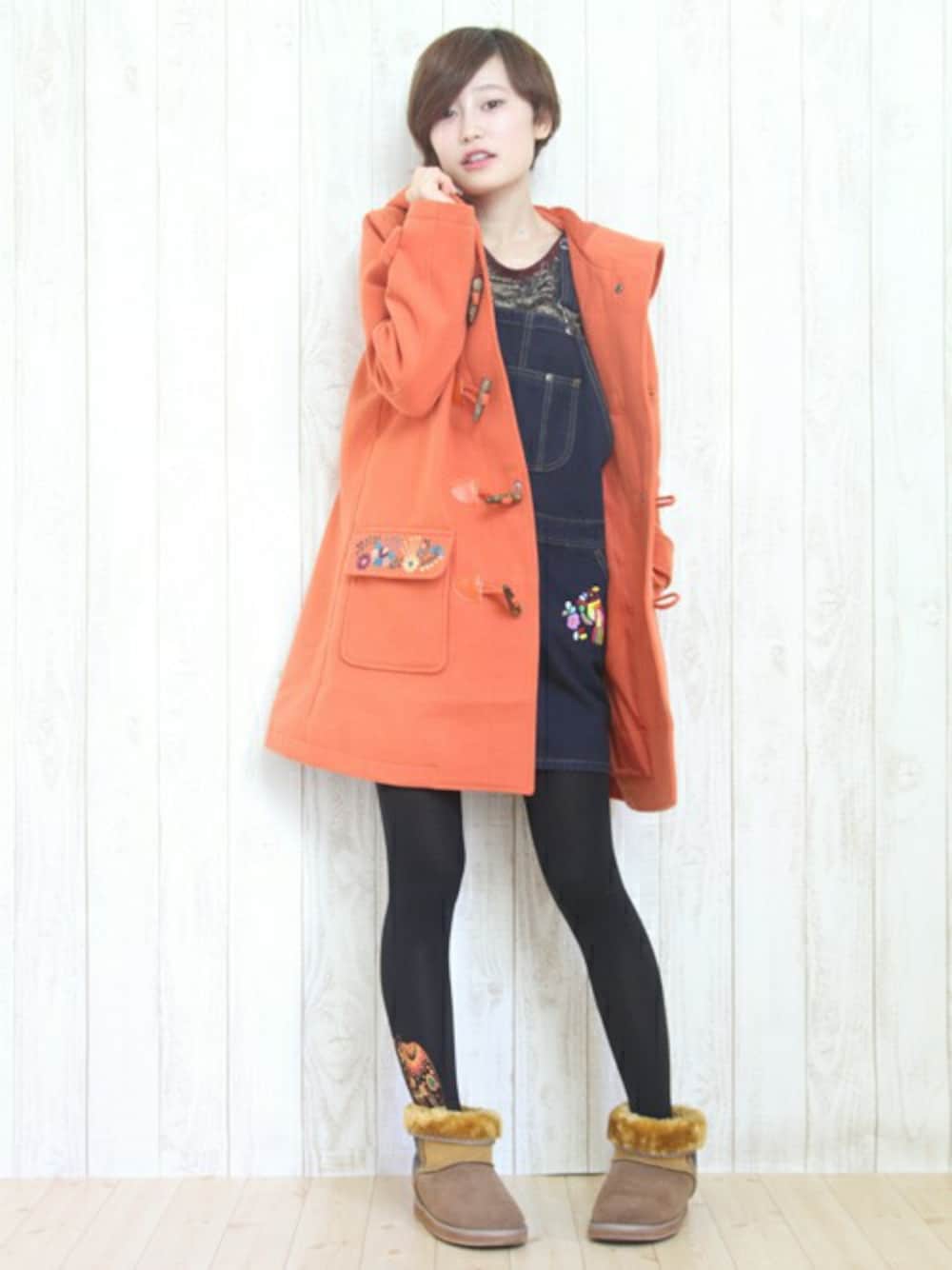 wasanのダッフルコート「メキシコフラワーEMBダッフルコート」を使ったコーディネート