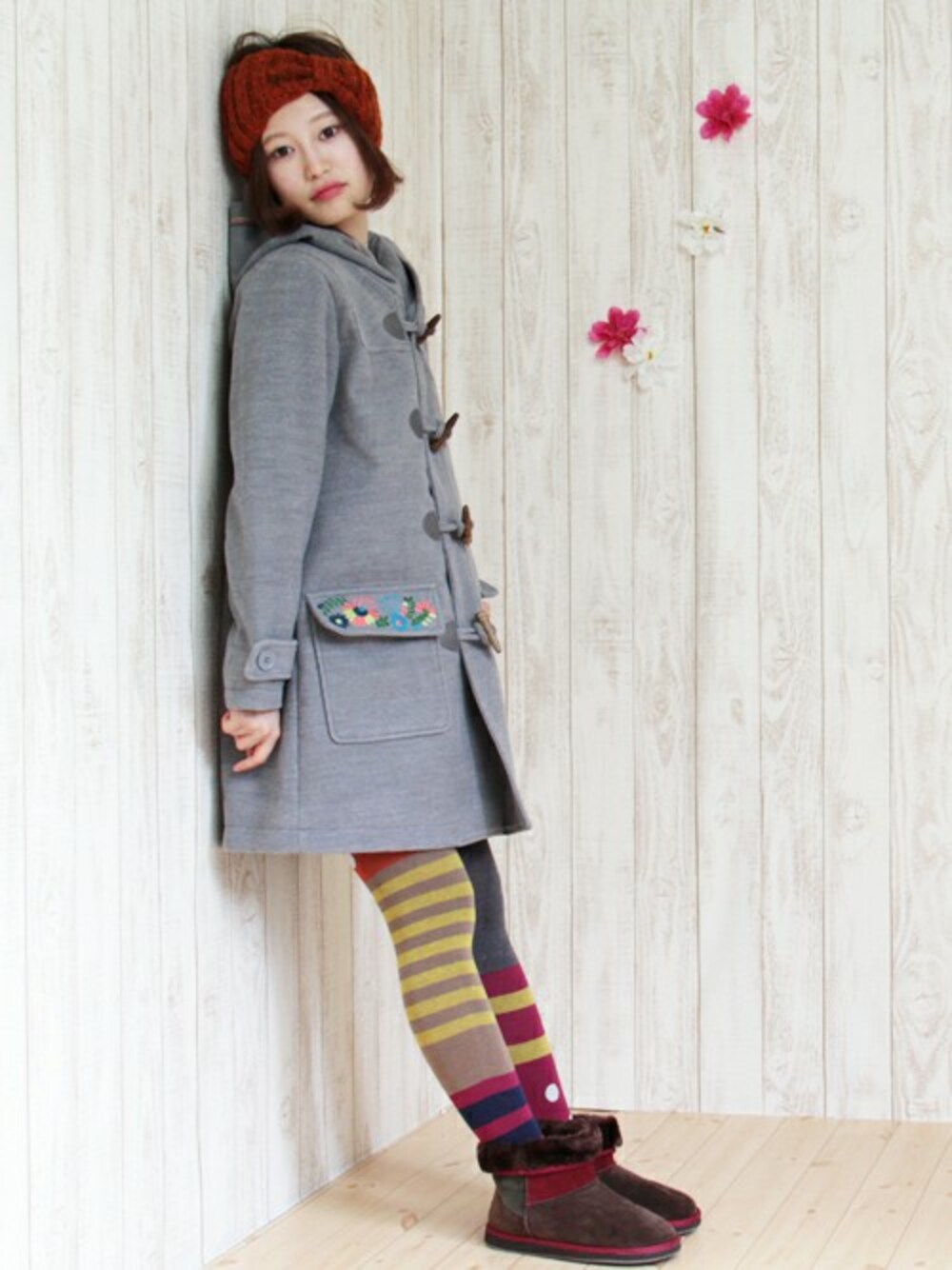 wasanのダッフルコート「メキシコフラワーEMBダッフルコート」を使ったコーディネート