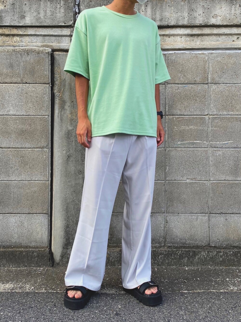 タカヒロのスラックス「ドレープ ワイドフレアスラックス【セットアップ対応】」を使ったコーディネート
