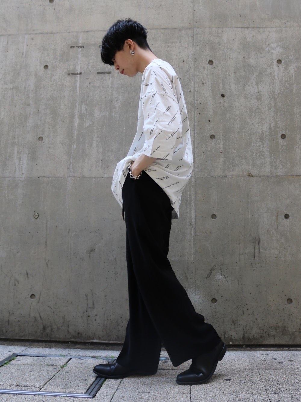 ヤマモトのTシャツ/カットソー「ジョルジュメッセージビッグシルエットTシャツ」を使ったコーディネート