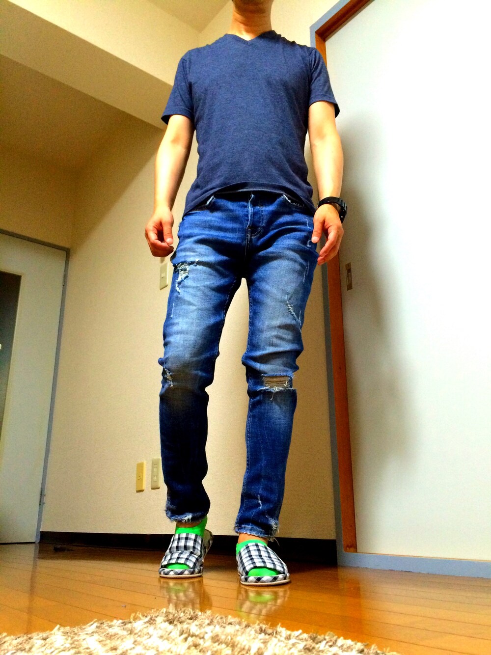 なべさんのデニムパンツを使ったコーディネート