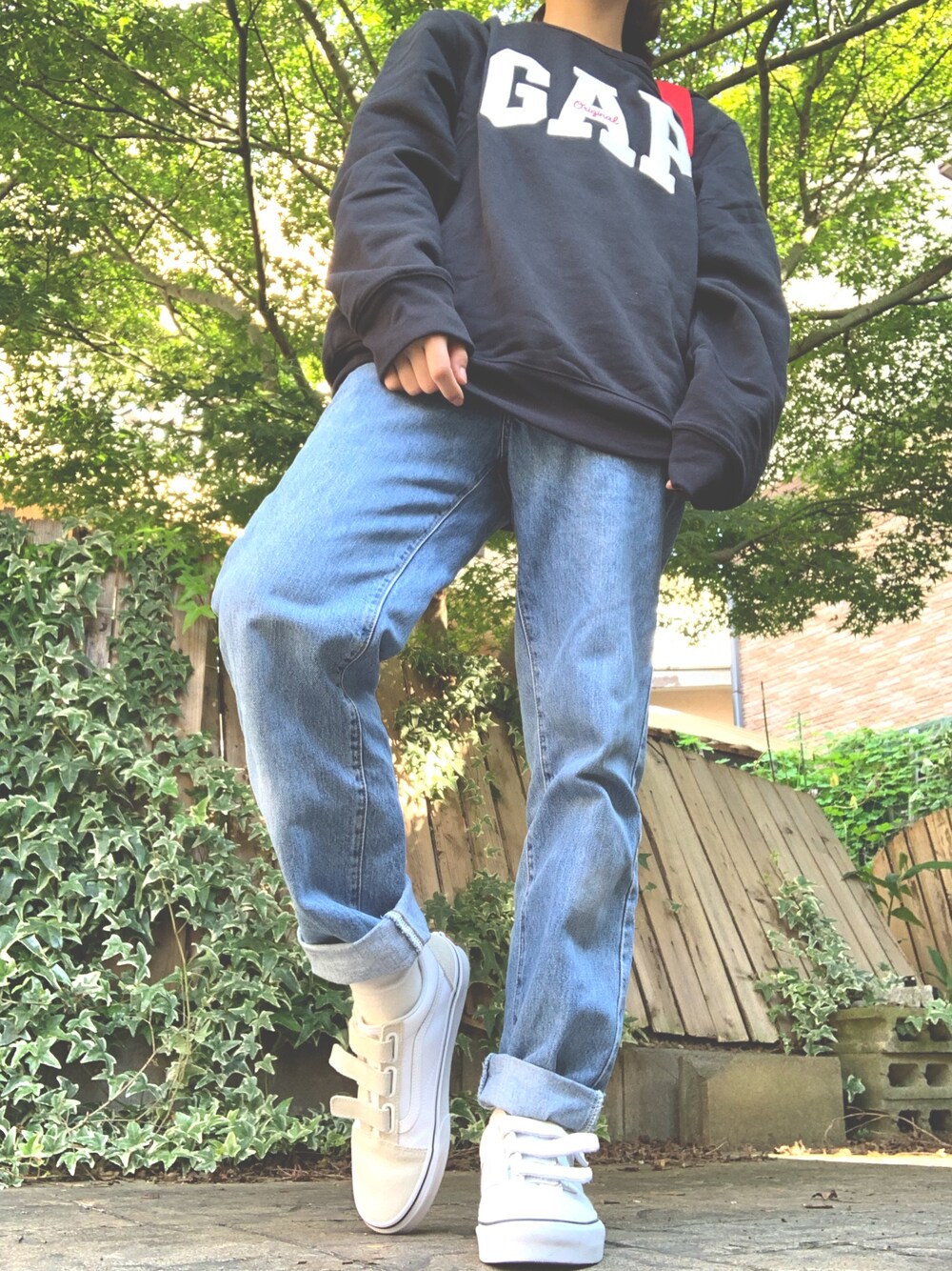GAPのパーカーはロゴおっきくて可愛い♡ スニーカーとも相性抜群👟