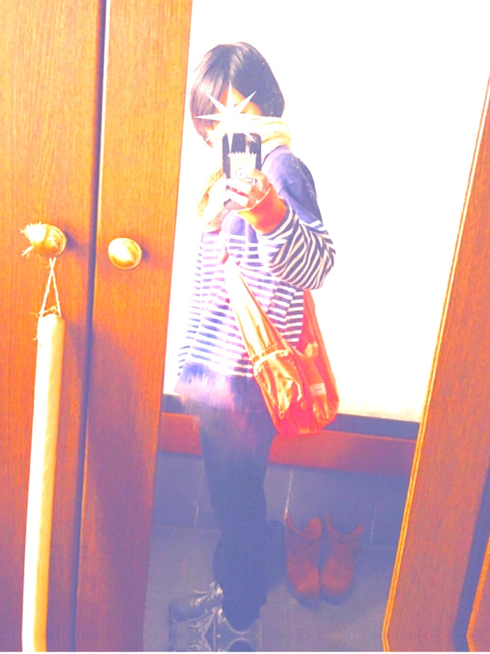 バックとプルオーバーporterです。 プルオーバーの袖がオレンジなのでporterのショルダーバッグも蛍光オレンジにしてみました。メンズもの大好きすぎる(╹◡╹)✴︎✴︎