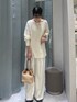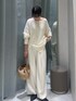 tops ドライタッチで通気性が良いので今すぐ着られて夏まで使っていただけます! ゆったりとしたサイズ感ですが、前スリットになっているので程よくゆるっとリラクシーな雰囲気に。 bottoms ゆとりのあるワイドパンツでWウエストが今年らしさを演出してくれます 少し大きめなので164cmで36サイズ着用してます!