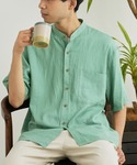 リネンシャツでさらっと、そこまでお出かけ。 ワンポイントTEEがイカしてます。