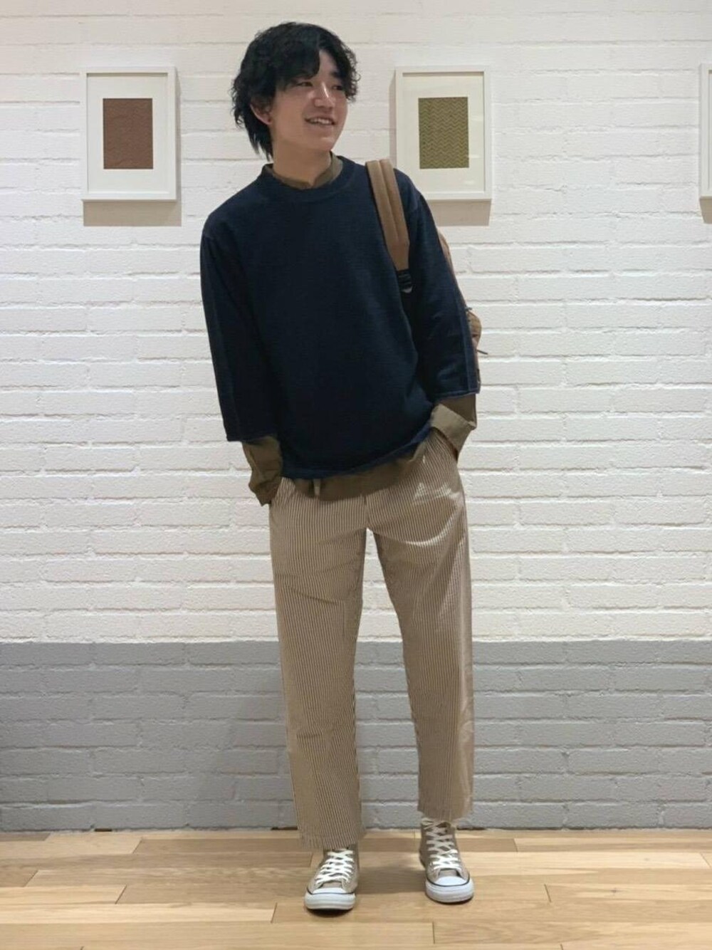 ご覧頂きありがとうございます。もう、桜は関東では満開を迎える頃ですが、皆様はお花見等には行かれるご予定はございましたでしょうか?この時期、昼と夜の寒暖差がずいぶんある為、コーディネートにお悩みの方もいらっしゃるかと思います。このコーディネートは、七分袖だけだとこの時期の夜の冷え込みには勝てませんが、シャツをレイヤードする事で寒さもしのげて少しお洒落さもプラス出来るのでオススメですよ!