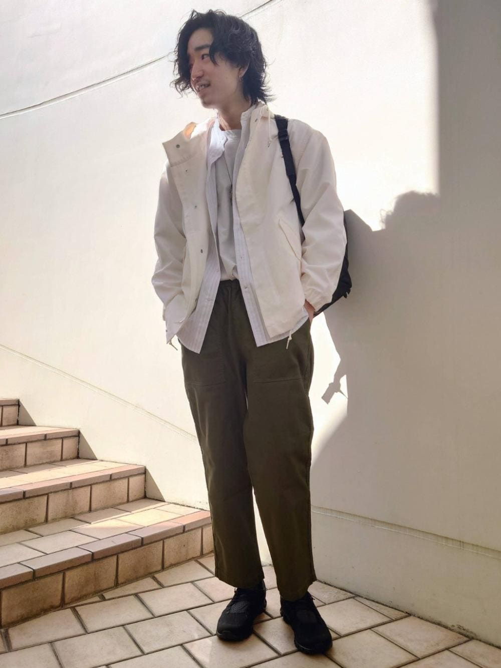 身長180cm SIZE【全てL シューズ27.5cm ネックレス私物】 ニュアンスカラーをベースに、カーキのパンツでワーク感を。タックインしてクリーンにまとめてます。薄手の羽織物は気温調節の観点から、かなり使い勝手が良いので一着あると非常に便利です。 中のシャツもレイヤードがしやすい為、デニム等と合わせ春らしくするのもオススメです。 是非、店頭・オンラインストアでお求めください。