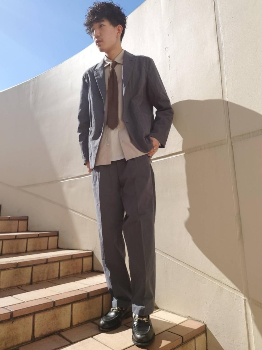 いつも定期的にタイドアップがしたくなります。ゆったりとしたセットアップに、 ルーズなシャツを合わせてタイドアップを。 あえて、シャツ入れずに出すことで 抜け感を出してかっちりし過ぎないようにしています。 ノータイも良いですし、 足元はスニーカーも合わせれるので是非お試しください。 身長180cm SIZE【全てL】