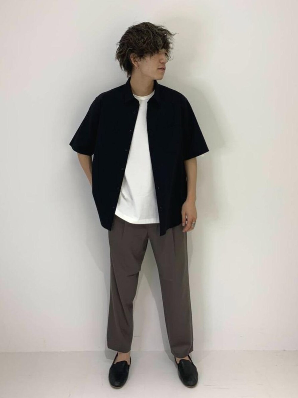 ・年齢:20代前半 ・身長:180cm ・普段サイズ:トップス L/ボトムス L 【サイズ感】 シャツ:身幅ややゆったり Tシャツ:全体的にゆったり ボトムス:標準的 【コーディネートポイント】 シンプルにキレイめに合わせたコーディネートです。派手な色遣いはしていないので、小物等で差し色を入れるのがオススメです!