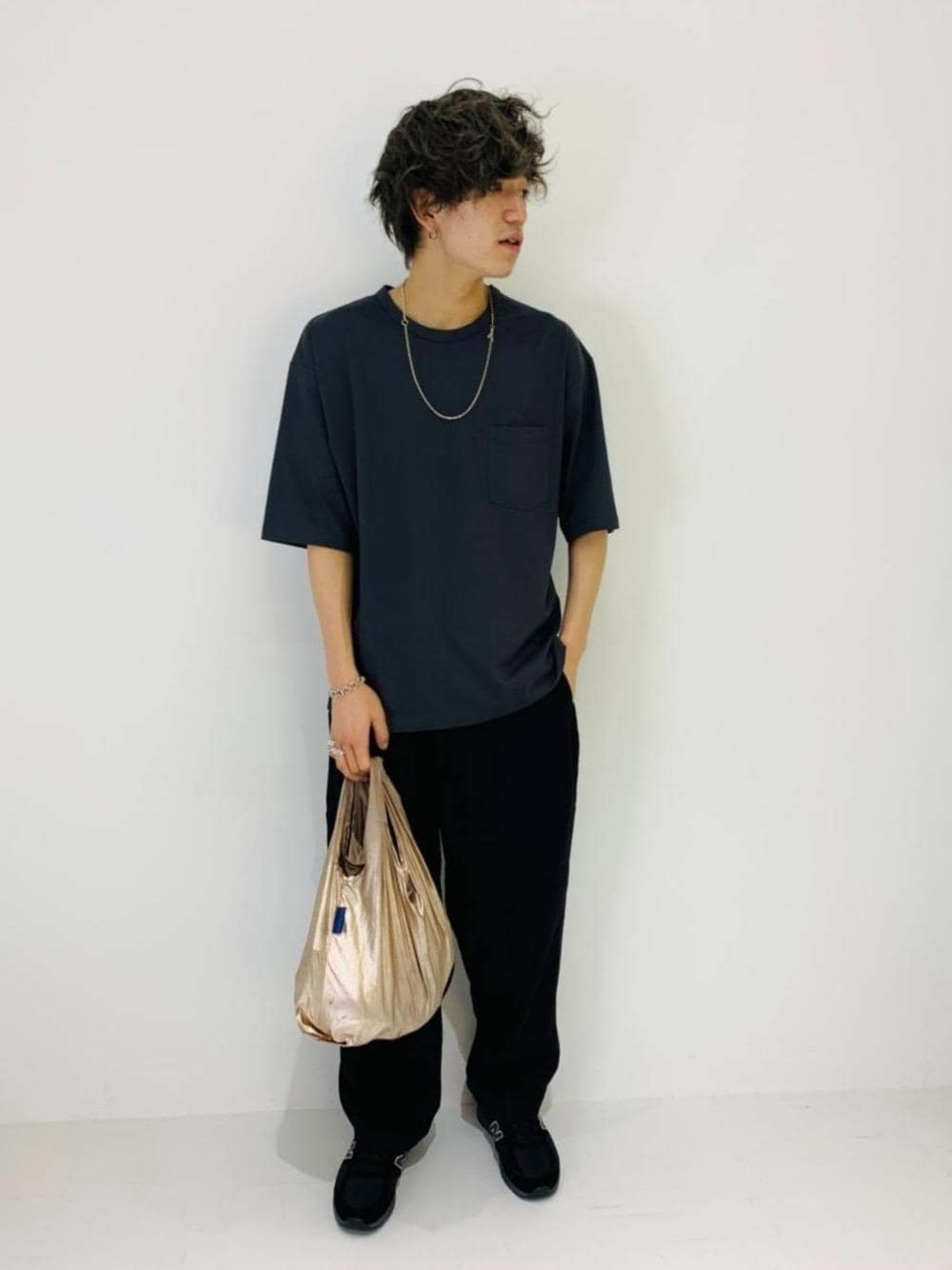 ・年齢:20代前半 ・身長:180cm ・普段サイズ:トップス L/ボトムス L/シューズ 28.0cm 【コーディネートポイント】 シンプルなトーンオントーンコーディネートです。ゆったりとしたトップスにワイドパンツを合わせて、ラフな印象にまとめております。 ※ネックレス私物
