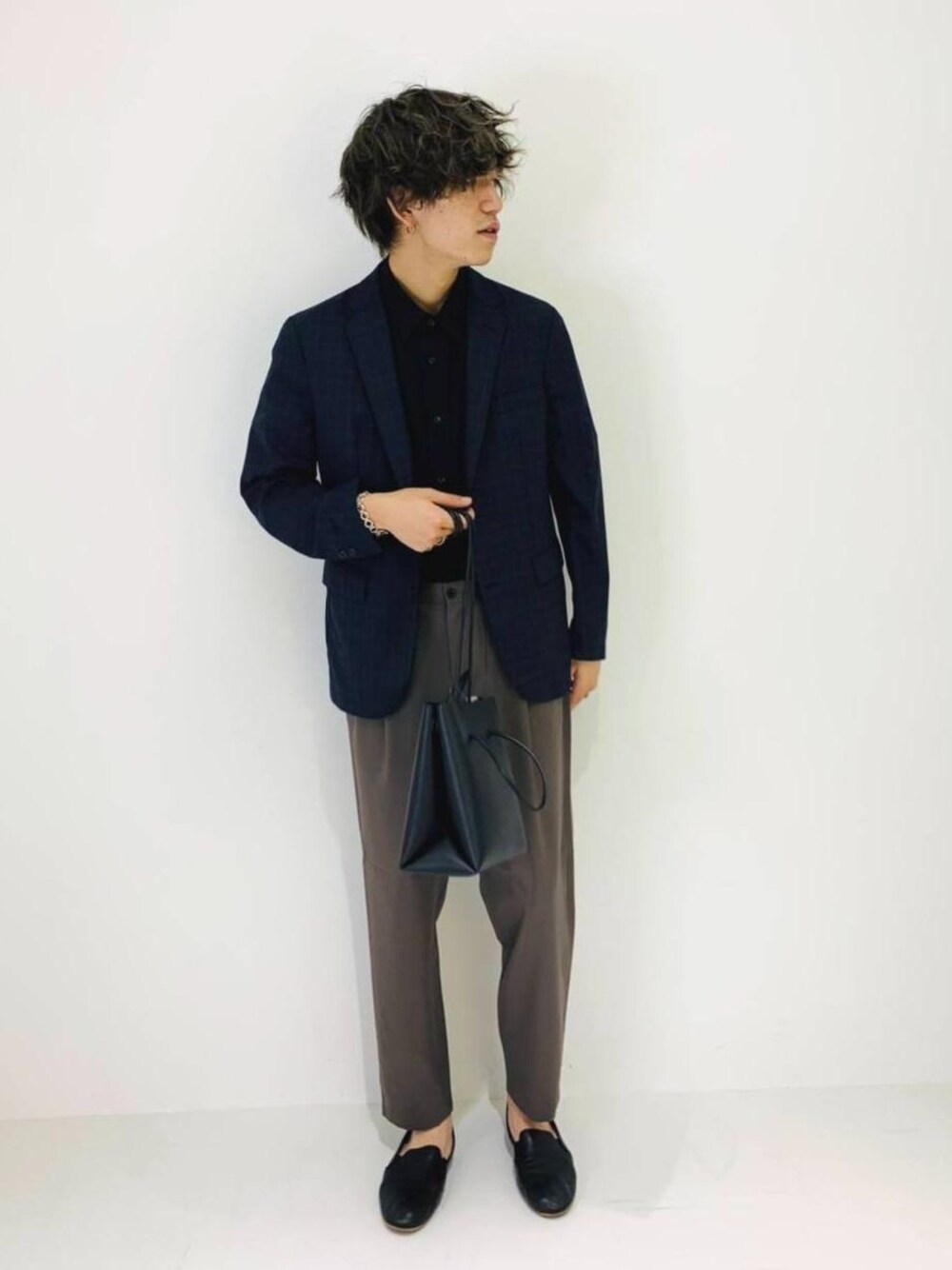 ・年齢:20代前半 ・身長:180cm ・普段サイズ:シャツ L/ジャケット L/ボトムス L 【コーディネートポイント】 同じ生地を使用したジャケットとパンツでまとめた、普段遣い・オフィスカジュアルでも使えるコーディネートをイメージしました。チェック柄のジャケットにインナーに黒を合わせているので、落ち着いたコーディネートになります。是非オススメです。