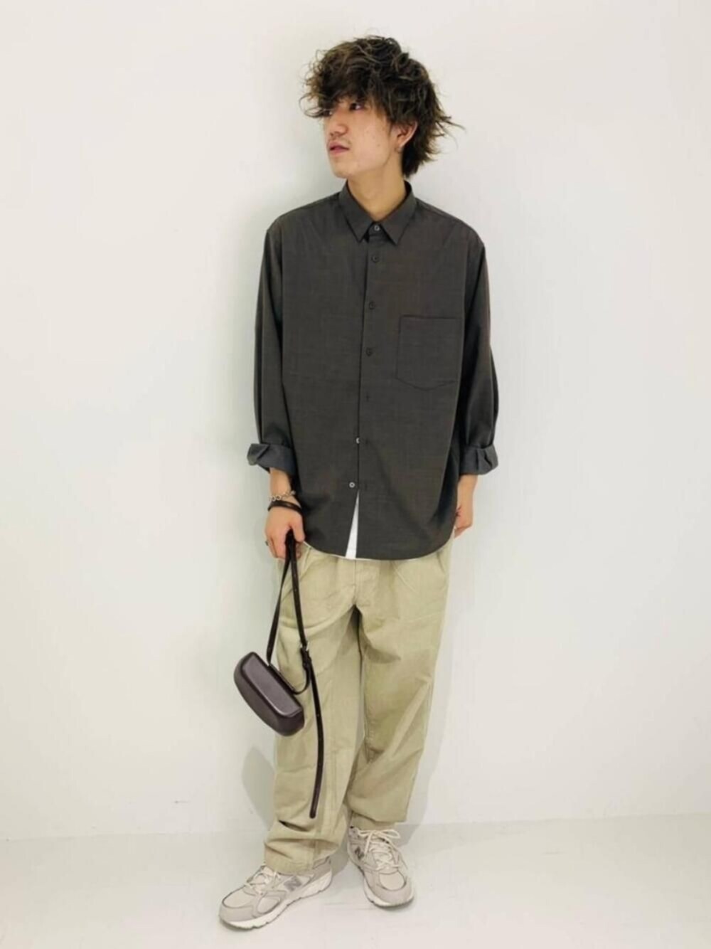 ・年齢:20代前半 ・身長:180cm 【普段サイズ】トップス L/ボトムス L/シューズ 28.0cm 【サイズ感】 シャツ:全体的にゆったり ボトムス:太もも周り太め、ウエストドローコードで縛れます シューズ:標準的 【コーディネートポイント】 柔らかい印象をうけるブラウン系の色合いでまとめたカジュアルなコーディネートです。 上のボタンはしめて、下のボタンを開け 少しインナーを見せて抜け感を出すと 重たくなりすぎないので是非オススメです!