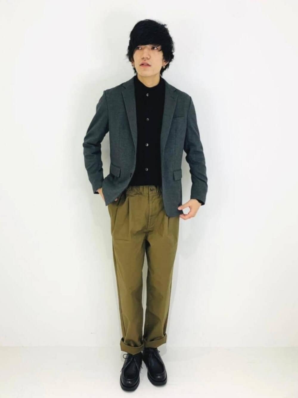 ・年齢:20代前半 ・身長:180cm 【普段サイズ】トップス L/ボトムス L/シューズ 28.0cm 【サイズ感】 モックネック:全体的にゆったり やや着丈長め (ニットポロの下に重ね着してます) ニットポロ:ほどよくゆったりめ やや着丈短め ボトムス:太もも周り太め 裾口にかけてテーパード シューズ:幅広め 【コーディネートポイント】 オフィスカジュアル等で着る様なイメージで合わせた ジャケパンコーディネートです。 パンツはカジュアルですが中に ニットポロ合わせて上品にまとめてます。 少しラフに合わせたい時にオススメです。