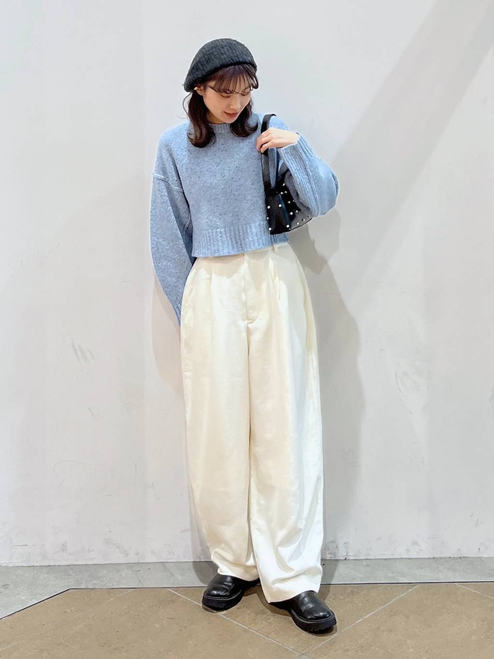 綺麗めコーデ トップス【Fサイズ】 yuw ショート丈でスッキリと印象のトップス! 暖かみのある素材感と軽くとても着心地もいいです✨ カラーも柔らかいので普段カラー物着ない方でも挑戦して頂きやすいです◎ パンツ【Mサイズ】 バルーンシルエットのパンツ! 光沢感もあって綺麗めな印象に◎