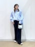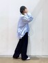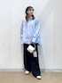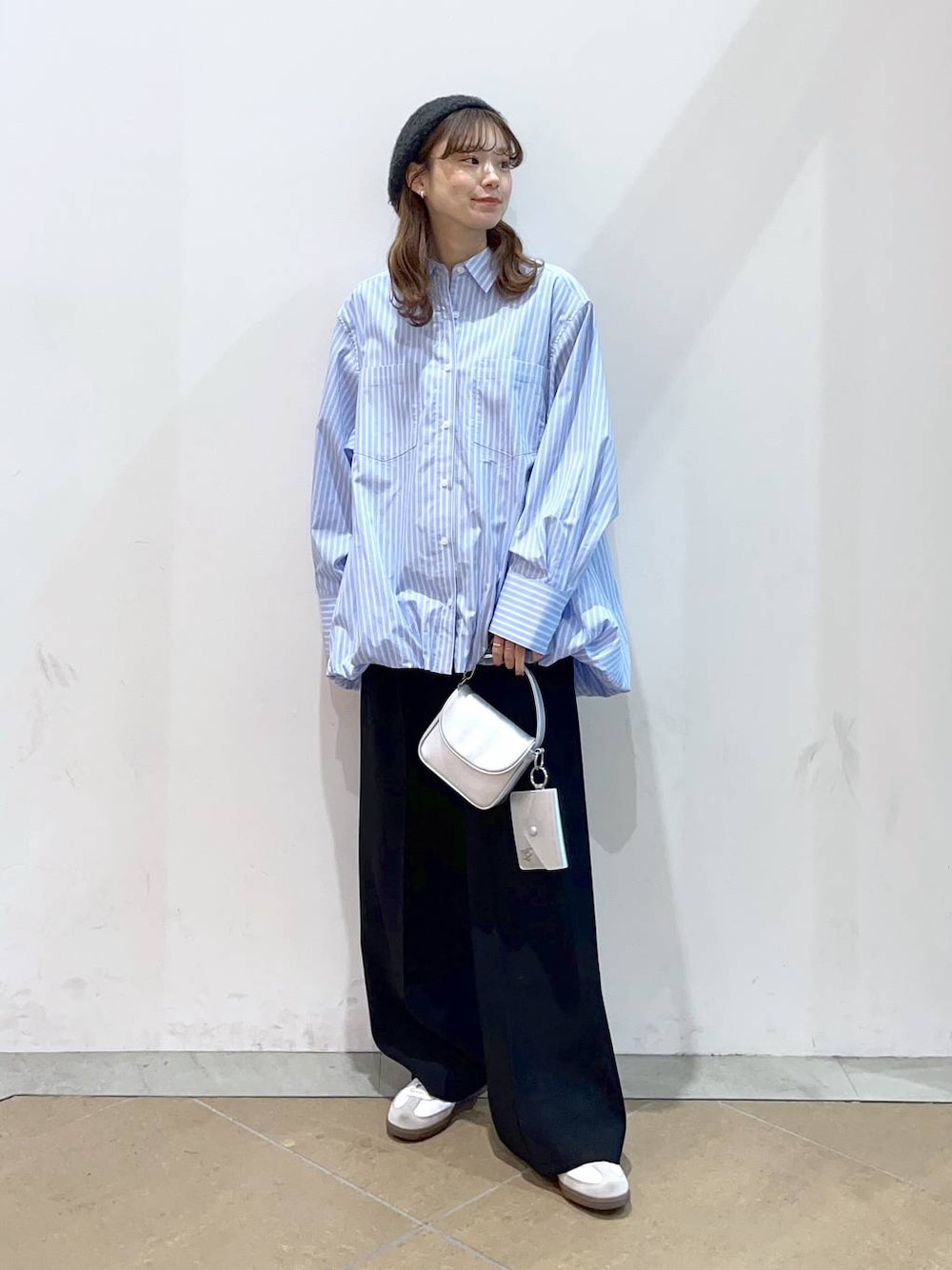 ブラウス【Fサイズ】yuw たっぽりストライプシャツ! 裾がゴムになっていて、バルーンのようなシルエットに✨ 前を開けたて羽織にしたり上からスウェットを重ねてもカワイイです! パンツ【Mサイズ】yuw 私もリアルバイして毎日のようにはいてるパンツ! シルエットも綺麗で高身長の私がきても裾が溜まるくらいの丈感✨
