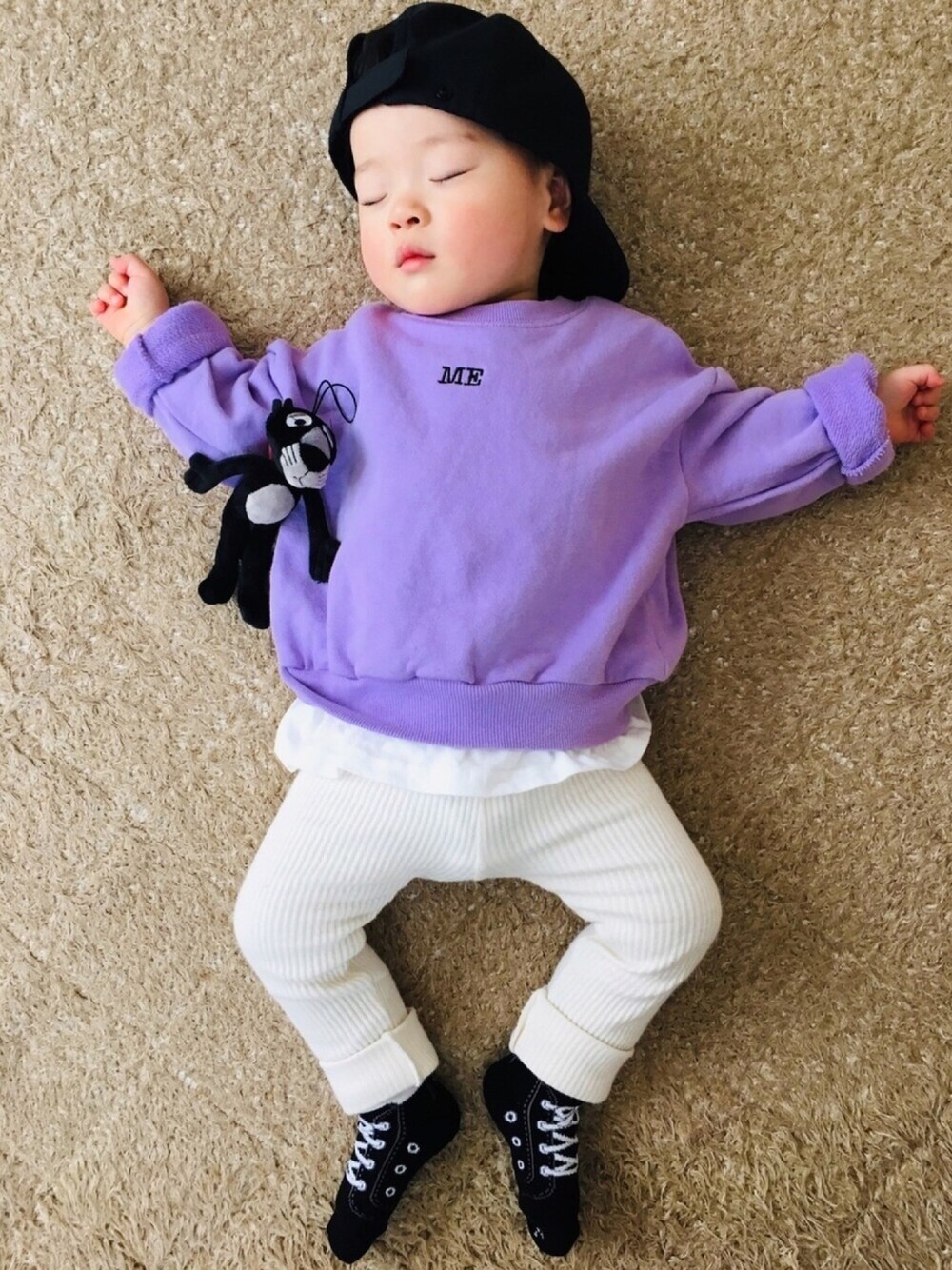 ☆11ヶ月☆ 親子リンクコーデで買った パープル色のトレーナー... 起きてる時はジタバタして一緒に写真が撮れない😢