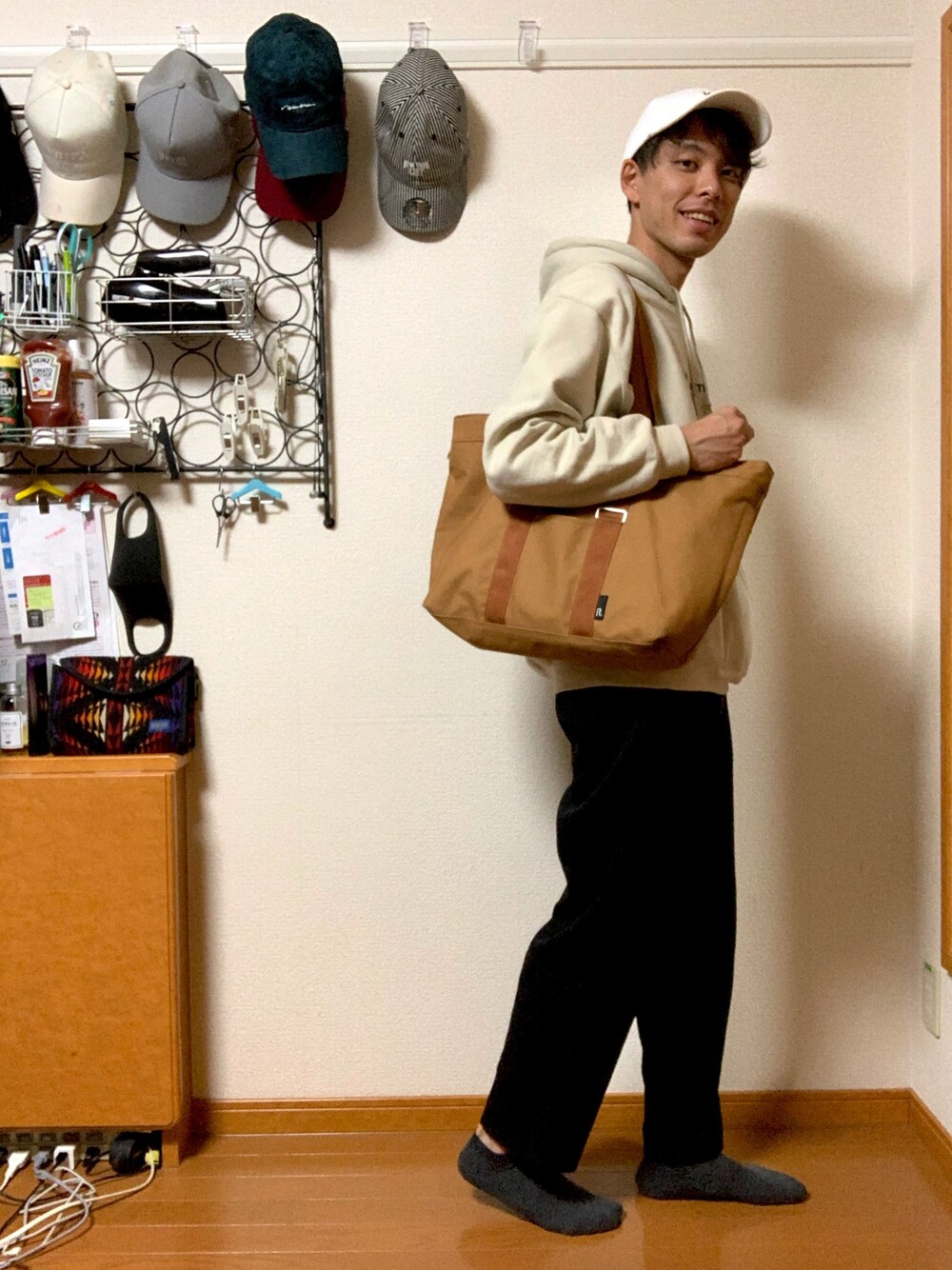 渡邉健人のトートバッグ「ルートート/SN.グランデ.コーテッドクロス-B」を使ったコーディネート