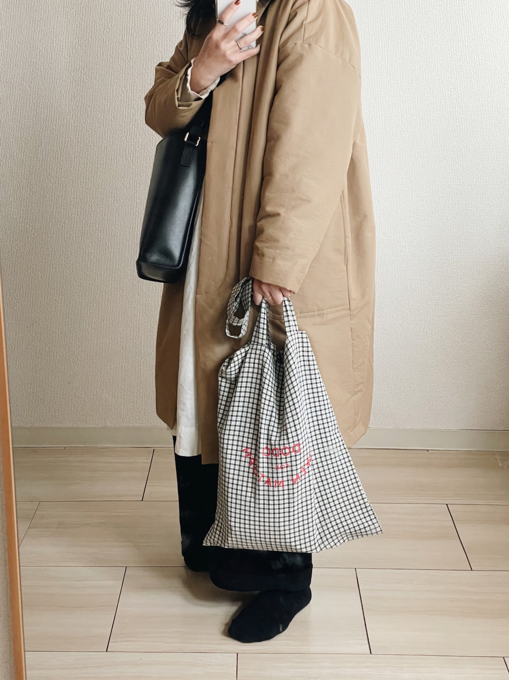 いつかの服。 ギンガムチェックのトートが可愛い🐼 Instagram @reikawatari