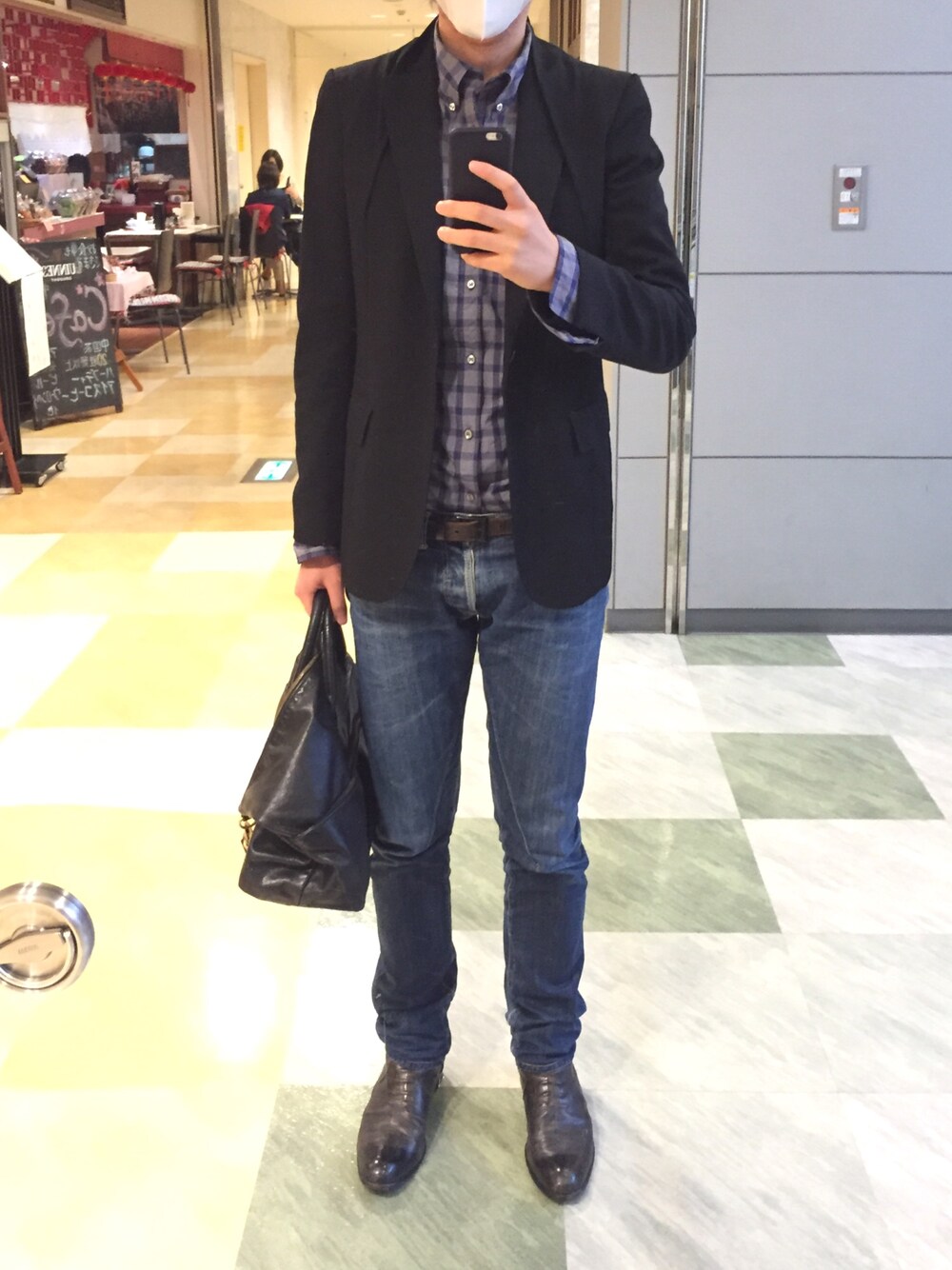 ジャケット+チェックシャツ