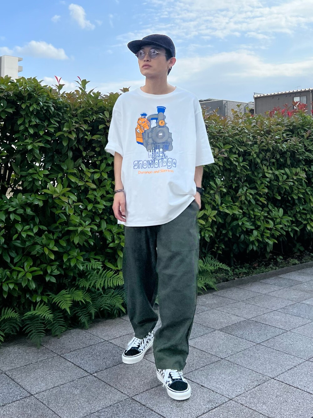 わたしょ(JOURNAL STANDARD relume ららぽーと海老名店)のTシャツ/カットソー「【HINE SNOWBRIDGE / ハイン スノウブリッジ】別注 プリントT」を使ったコーディネート