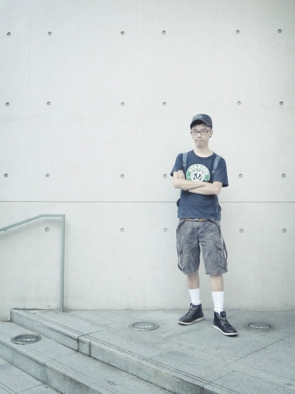 隨意穿著~單純地喜歡台大這面清水模。 By the way,迷彩元素彷彿永遠都不會退流行?什麼時候都可以穿出來!