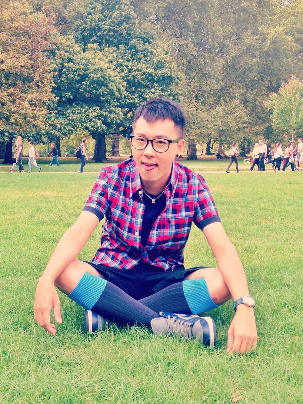 Picnic in Green Park, London. It's because of the large temperature difference between morning and noon and I would like to wear shorts in stead of pants, wearing thick long socks might be the best choice! And as if it had become a focus of attention on the streets!