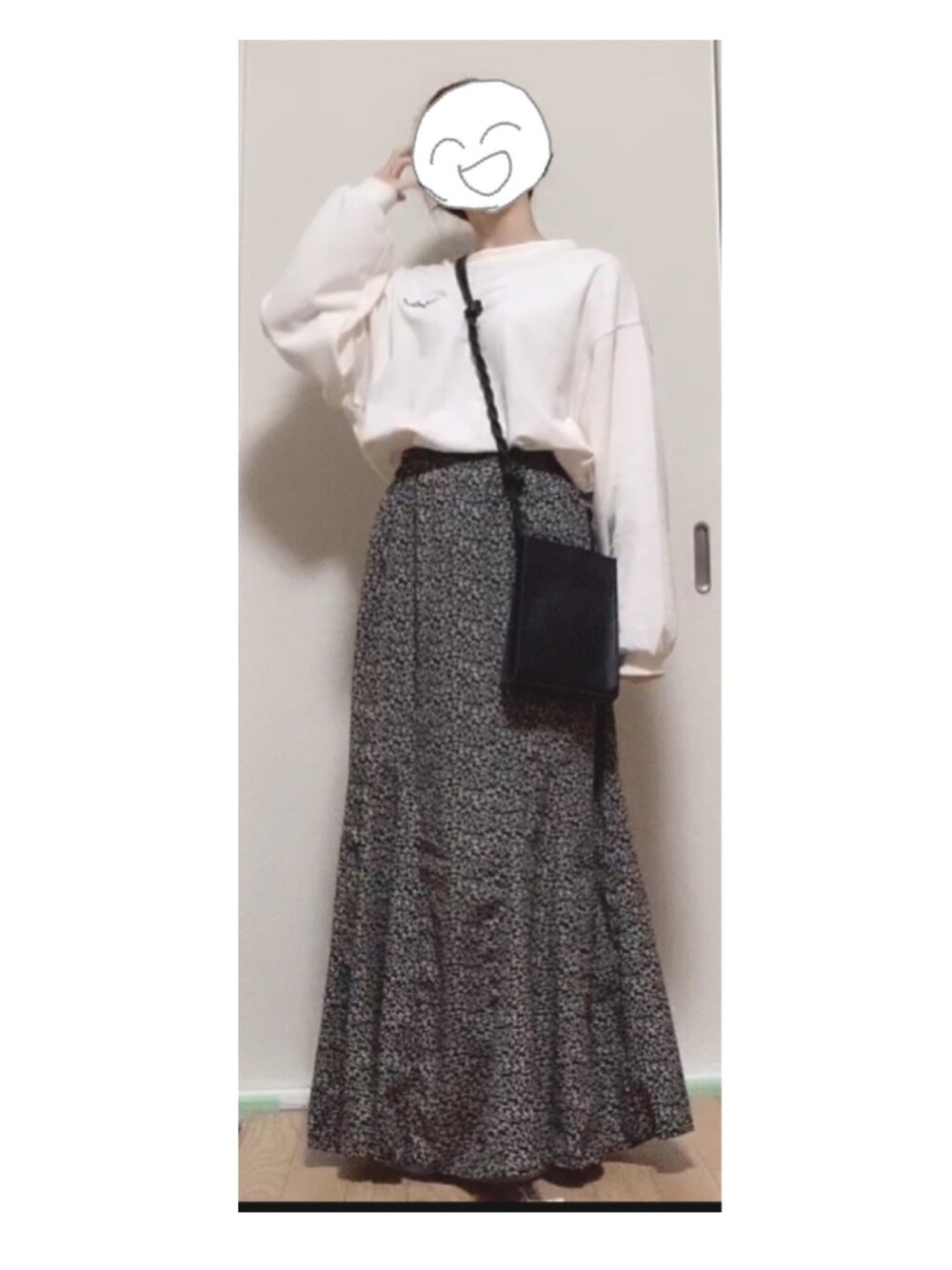 スウェットに花柄ロングスカートがゆるかわ