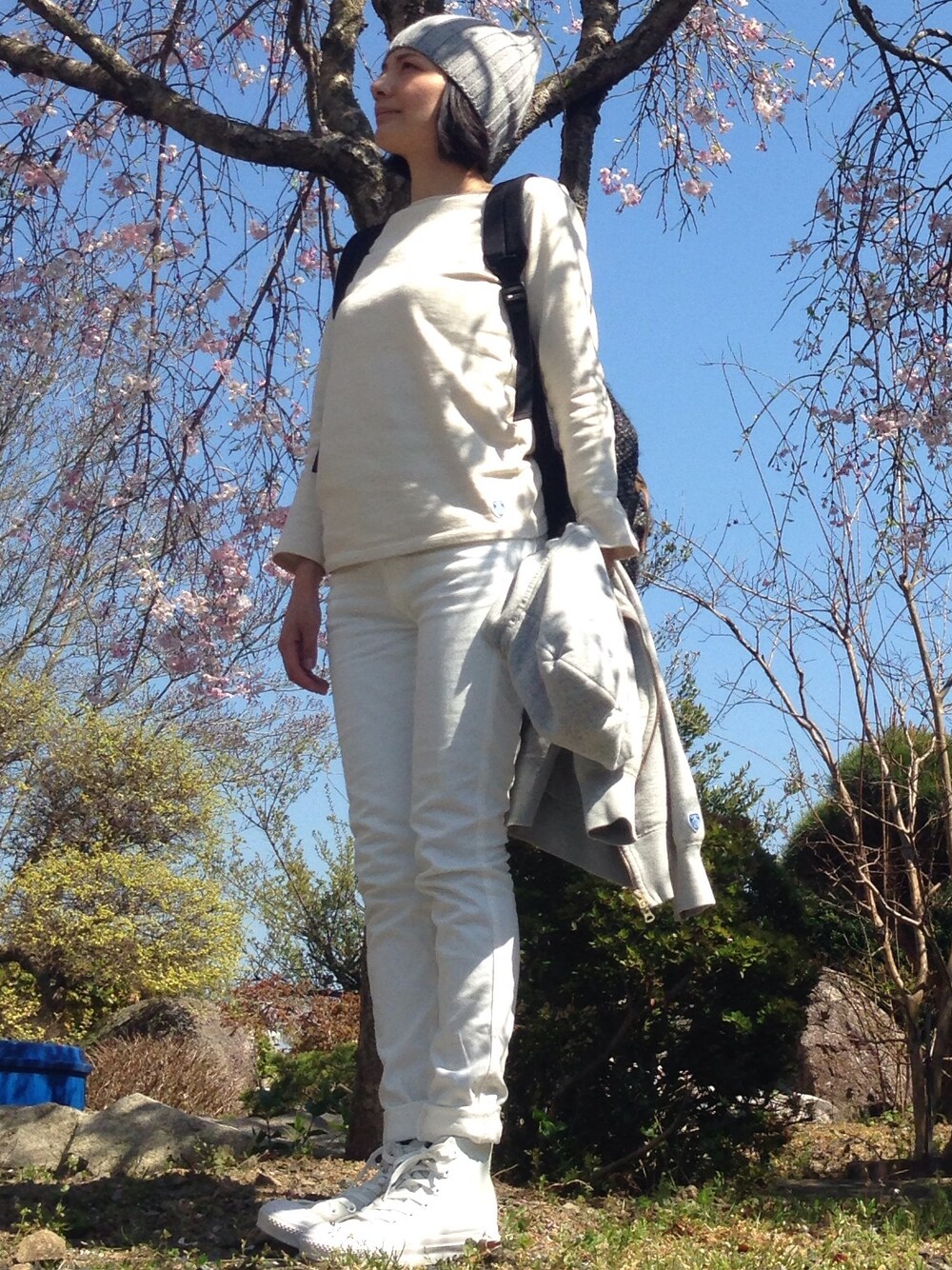 春らしく全身ホワイトコーデ。