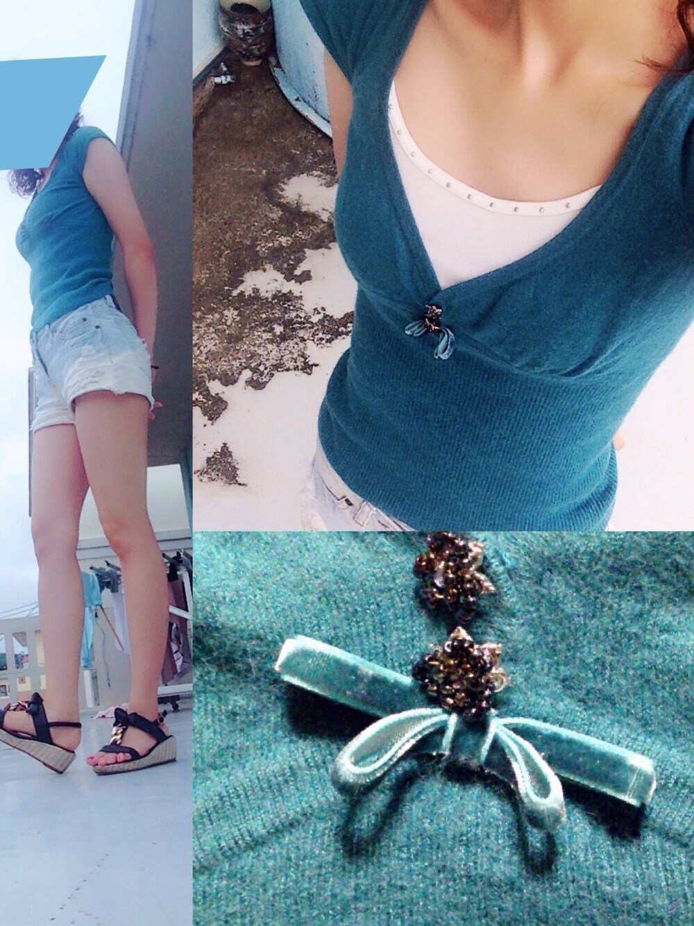 トップスは古着屋で買ったので原価はわかりません。胸のリボンがベルベット生地で可愛いです。