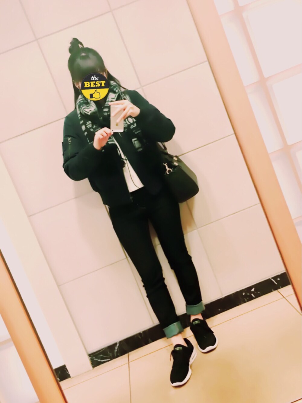 *らくちんコーデ MA-1 / スキニー / 白ニット / スニーカー *ハーフアップお団子 ゆるっとお団子がポイント すごく久しぶりにupした! コーデ下手なりに頑張ろう☻