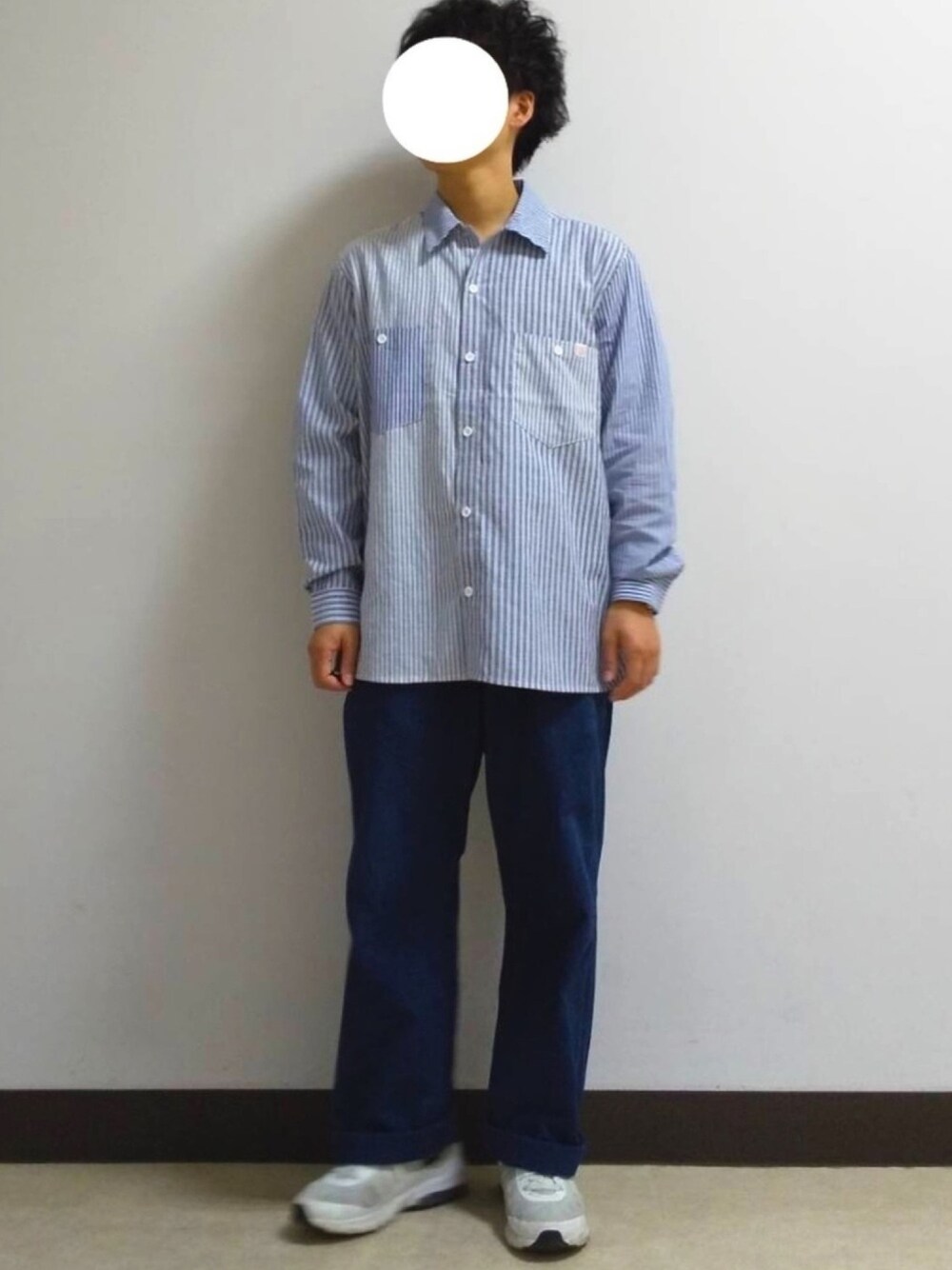BEAMSとUNIVERSAL OVERALLのコラボシャツを着用しました! 両側にポケットがあり、左右でデザインが違っていたりと様々な工夫が施されていて、一枚でさまになる点が気に入ってます😆 また全体的にブルーの色味で統一しました👕