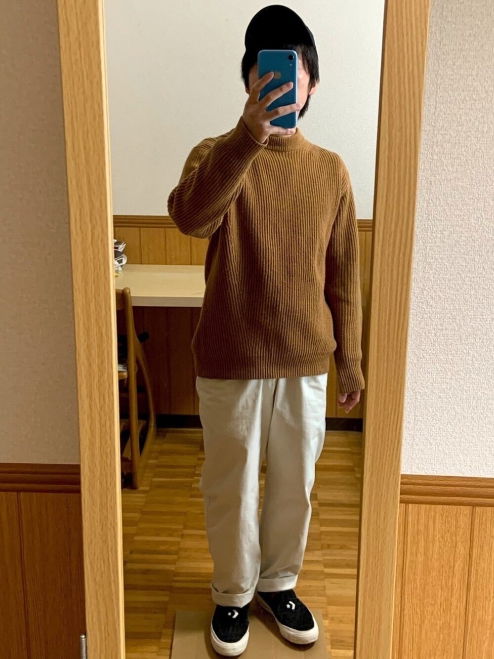 ブラウン×ホワイト 前回の投稿からコートを脱いだパターンです! ブラウンとホワイトは相性がいいですね😆 ニットは程よいオーバーサイズなので、身長の低い僕でも野暮ったくならず着れることができ、ゆったりしたパンツとも合わせやすいです!