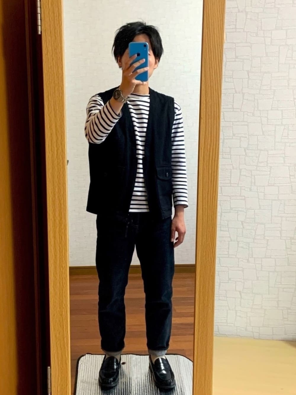 ボーダーT×ベスト✨ 春コーデです! 暑くなってきたので今の時期には丁度いい服装かなと思います。 シンプルなアイテムの組み合わせなので、誰でも取り入れやすくおすすめですよ👍