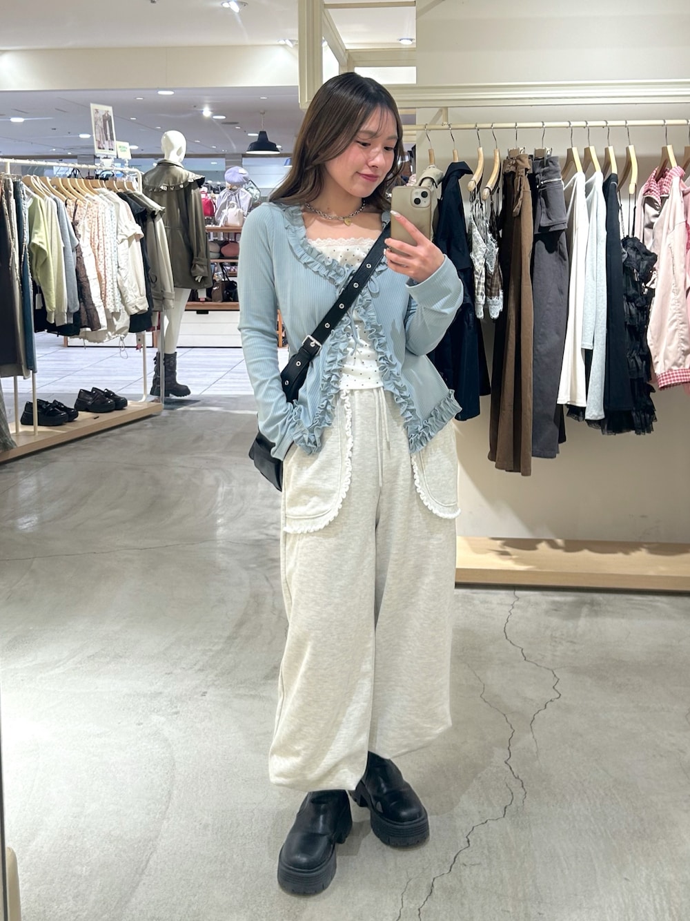 ご覧いただきありがとうございます! 152cm / 骨格ウェーブ / ブルベ夏 >トップス キャミとカーディガンがくっついているトップスで、1枚で可愛く見せてくれます! 丈感が短すぎないので、お尻やお腹の気になる部分もカバーしてくれるのが嬉しいポイント! 前ボタンを開けることで、インしなくてもすっきり見えるので骨格ウェーブさんにもおすすめ◎ > パンツ ポケット部分のフリルが可愛く、おしゃれに見せてくれるスウェットパンツ。 裾が絞れるデザインなので、低身長さんも丈感心配しすぎず履いていただけます◎ 薄手生地でこれからの季節も合わせやすくなっています! instagram @wc_fuchiko