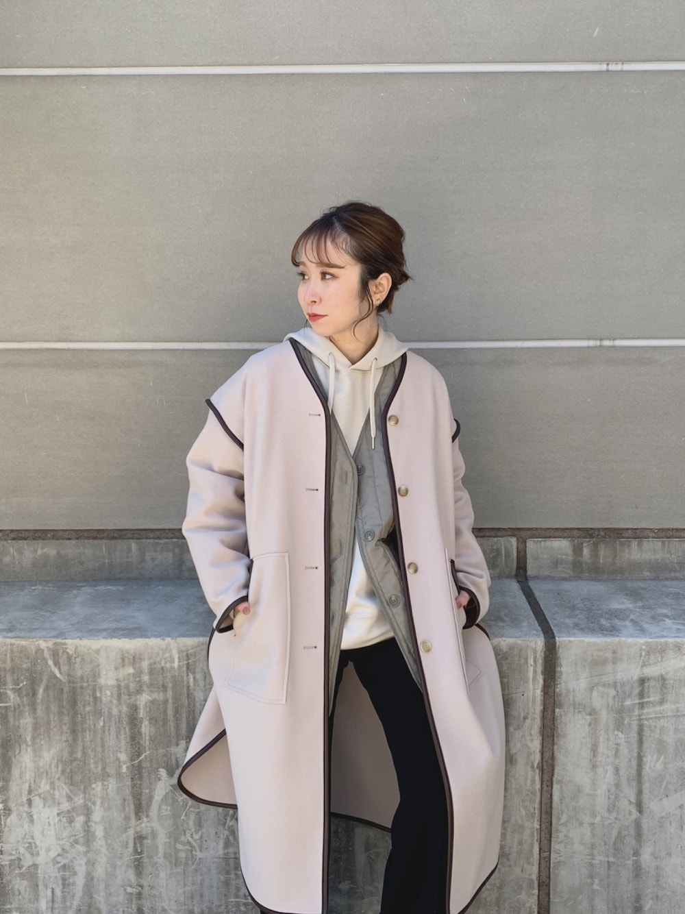ノーカラーコート (ベージュ系)ノーカラーコート