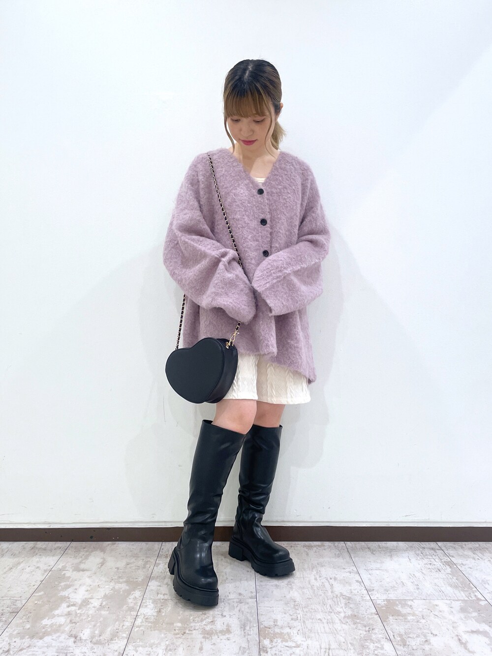 暖かニットカーデ💭 これからの季節デイリー使いする優秀アイテムです! ビックシルエットなのでミニ丈ボトムやワンピースに合わせるのがオススメです︎︎◌ ロングブーツは1つあると一気にトレンドコーデに◎