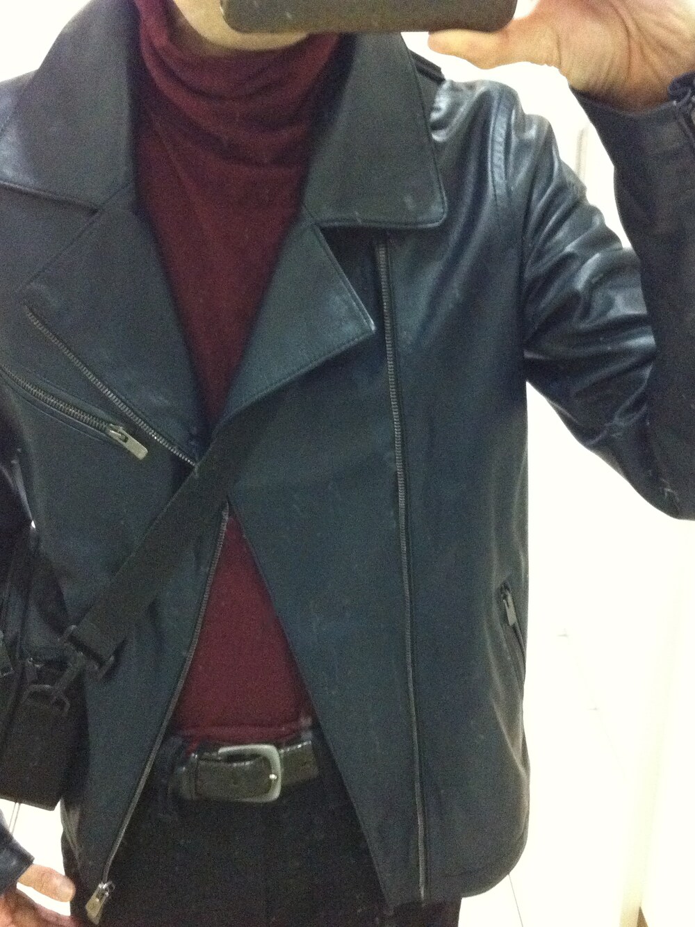 見て下さりありがとうございます。 2016/11/9、短時間だけ外出した時の服装。手抜き写真ですみません。 ライダーズジャケット: 寒いのが好き、という訳ではないですが、ライダーズが着られる時期になって、この秋初めて、うきうきしながら着ました(笑)。 黒ではなく、濃紺です。 えんじのタートルネックカットソー: お気に入りブランドに<DRIES VAN NOTEN>を挙げておきながら、なかなか着られずにいましたが(現状、ネクタイを含めても5点持っているだけ。でも好き)、今後寒くなるので着ている分も投稿していくと思います。 すごくシンプルな組み合わせですが… ベルト、もっとごついバックルの方が合うでしょうか。ベルトあまり持っていないのです(>_<)