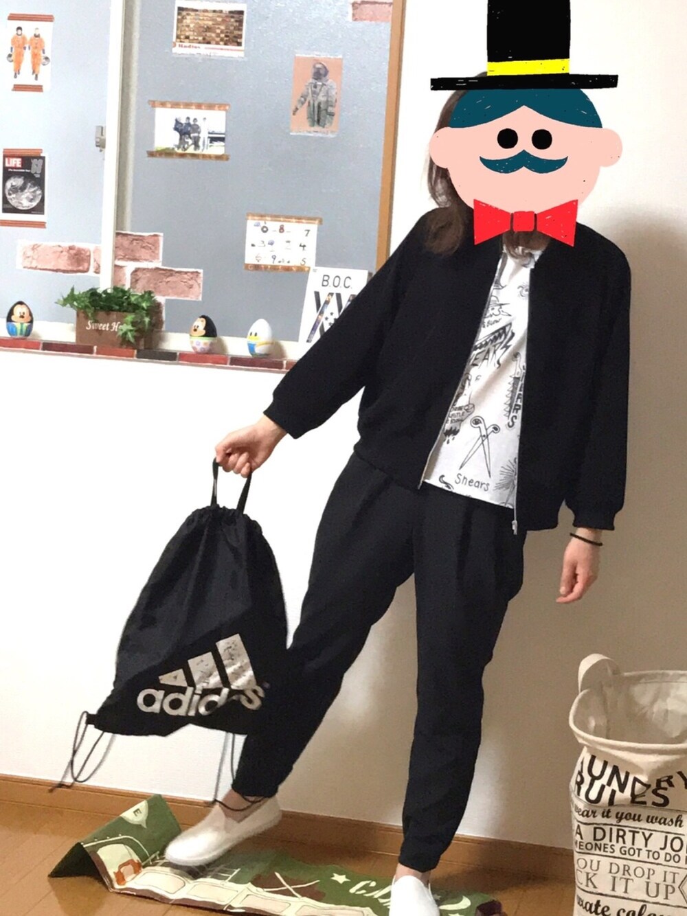 モノトーン。 デニムおやすみコーデ。