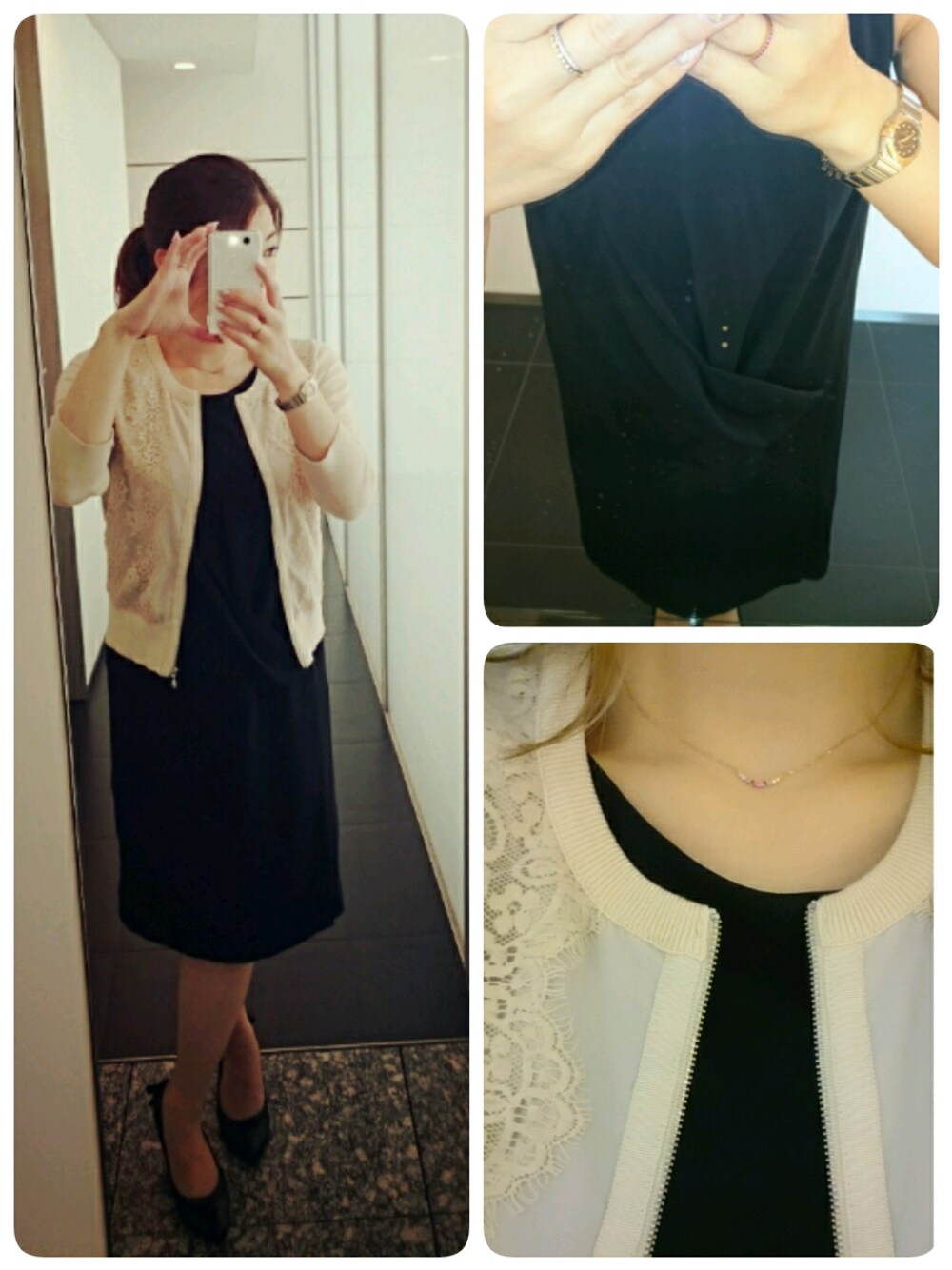 本日は仕事の都合でこんな感じに。。 ネイビーの膝丈ノースリワンピにジッパー付カーデを羽織り、適度にきちんと感を出しましたー! このワンピ、お洗濯OKなのです~ありがたや(^^)