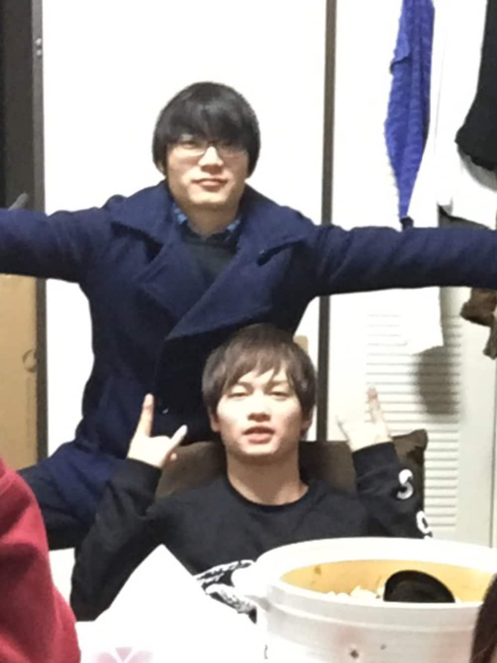 ブルー系のピーコートを着用したメンズの春コーディネートの1枚目の写真