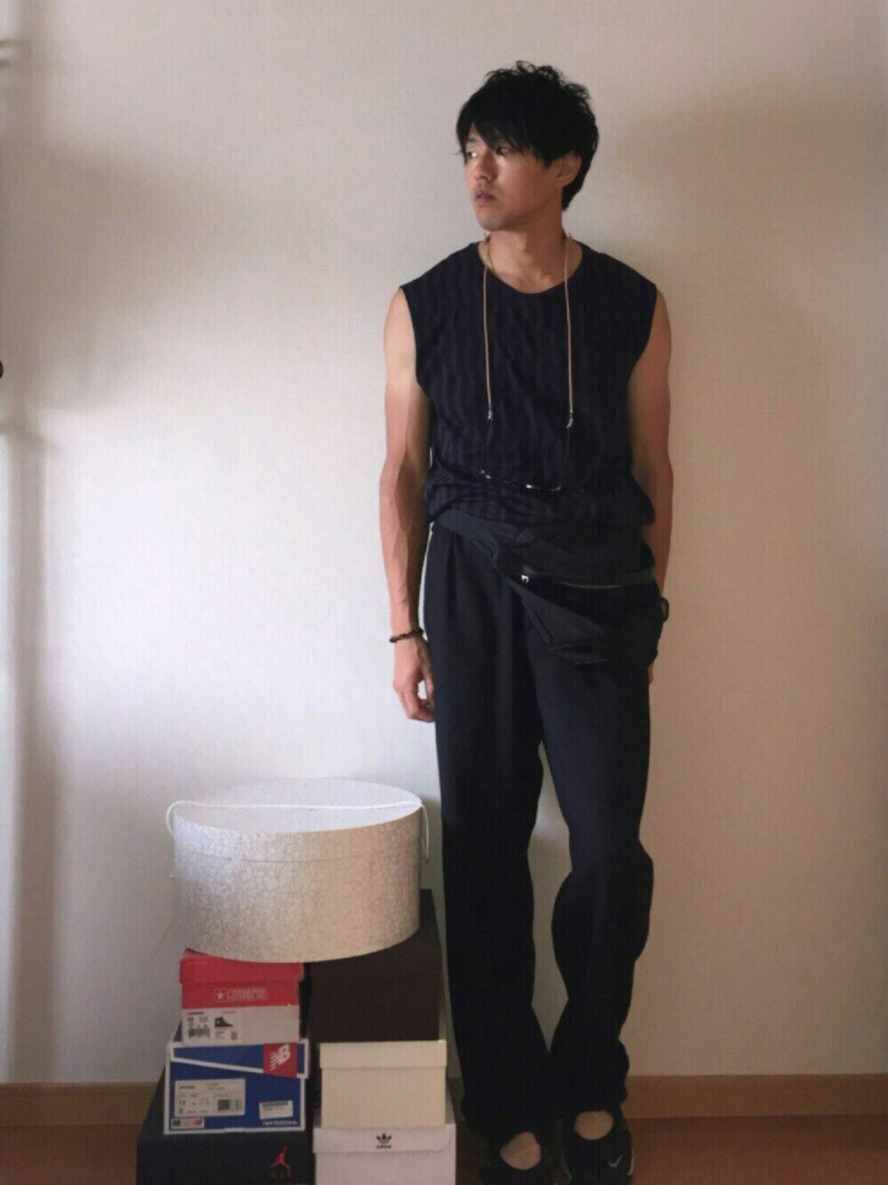 一昨日神戸行って呑みながらのショッピングした時のコーデ🍻 鳶職人の格好が好きでノースリーブ×ゆったりパンツ×足袋で鳶職人に寄せ👷🏻 そこに神嗣様のコーデに影響されてウエストポーチで安全帯をイメージして合わせました✨ 普段人は周りの人に合わせて無難なコーデしますが変態さんと会う時限定で変態モードに仕上げます👕 様々な職種の作業着、制服を見るのが好きですが改めて見ると洋服のデザインの殆どは働く服から来てるから面白いですよね☺️🎶