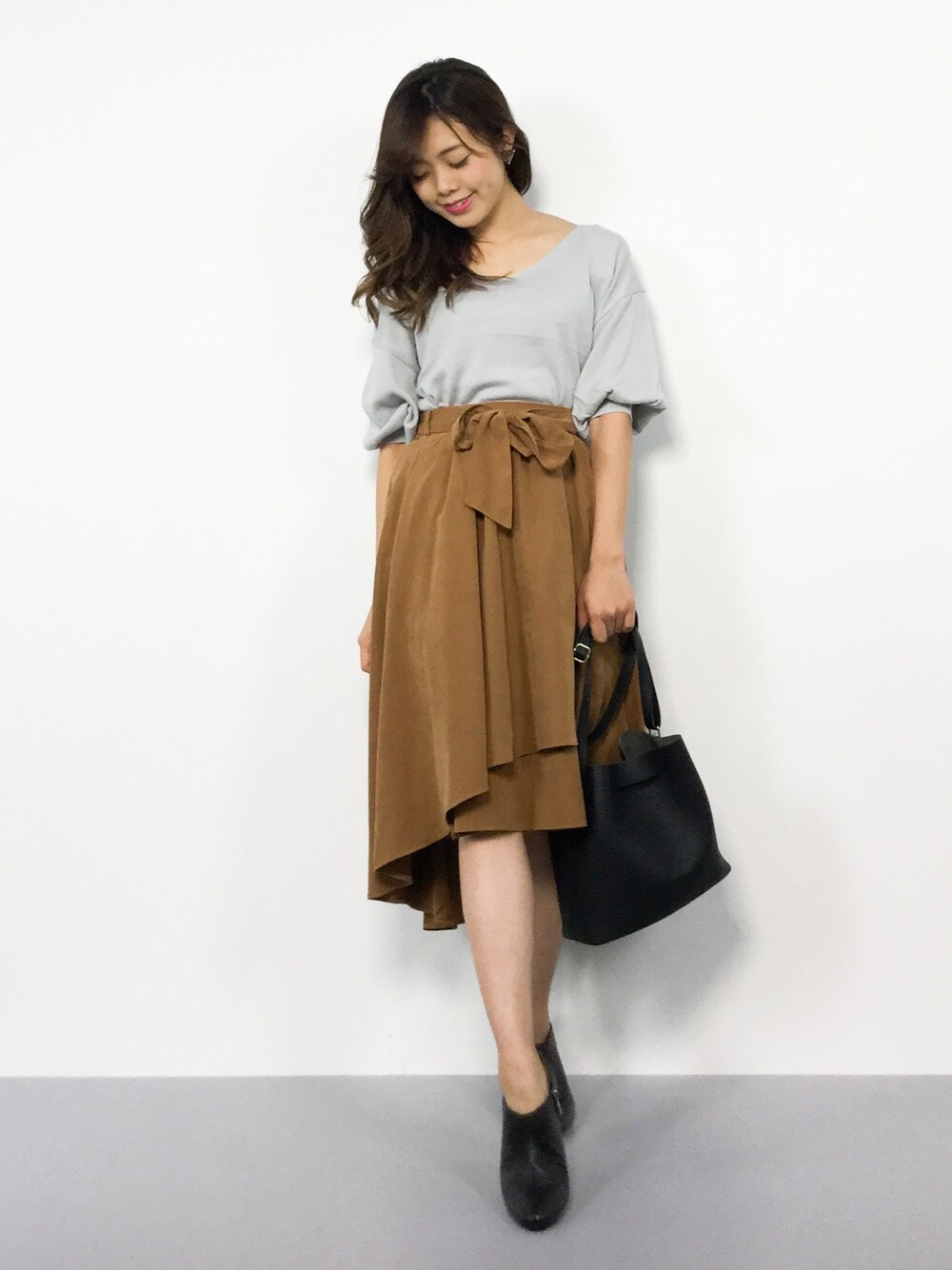 ARISA(ZOZOTOWN)のスカート「【10/26ヒルナンデスご紹介商品】【CanCam11月号掲載商品】サッシュ付ピーチラップイレヘム/スカート-2017AW-」を使ったコーディネート