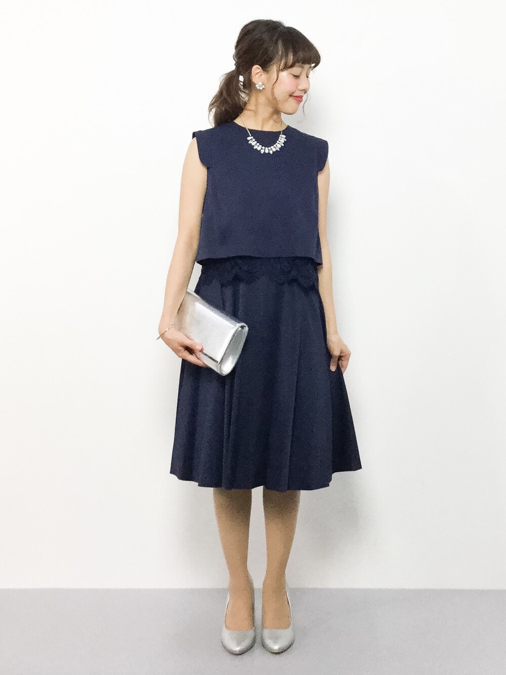 内山陽菜(ZOZOTOWN)のドレス「ノースリーブ&ミニ丈 パーティードレス スカラップレース大きいサイズフォーマルオケージョンドレス結婚式お呼ばれ 二次会 成人式」を使ったコーディネート