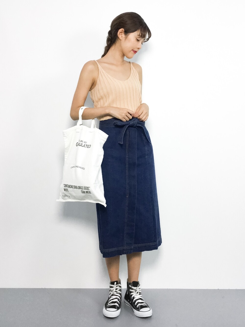 夏のカジュアルスタイル○ トレンド感のあるニットキャミがお気に入り♪ ただいまセールでお安くなってますよ!
