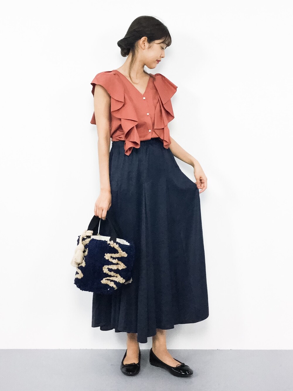 たっぷりのフリルが可愛いトップスがお気に入り♪ 秋色コーデです○