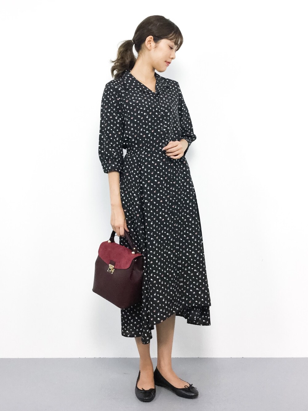 小物で秋色を取り入れました○ 大人カジュアルスタイル^^ トレンドの小花柄ワンピース♪ ただいま、セールでお安くなってますよ^^