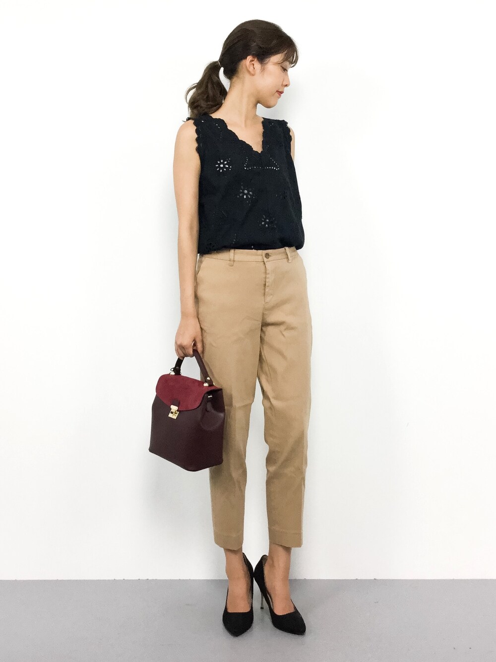 赤のバッグがポイント♪ 大人カジュアルスタイル○