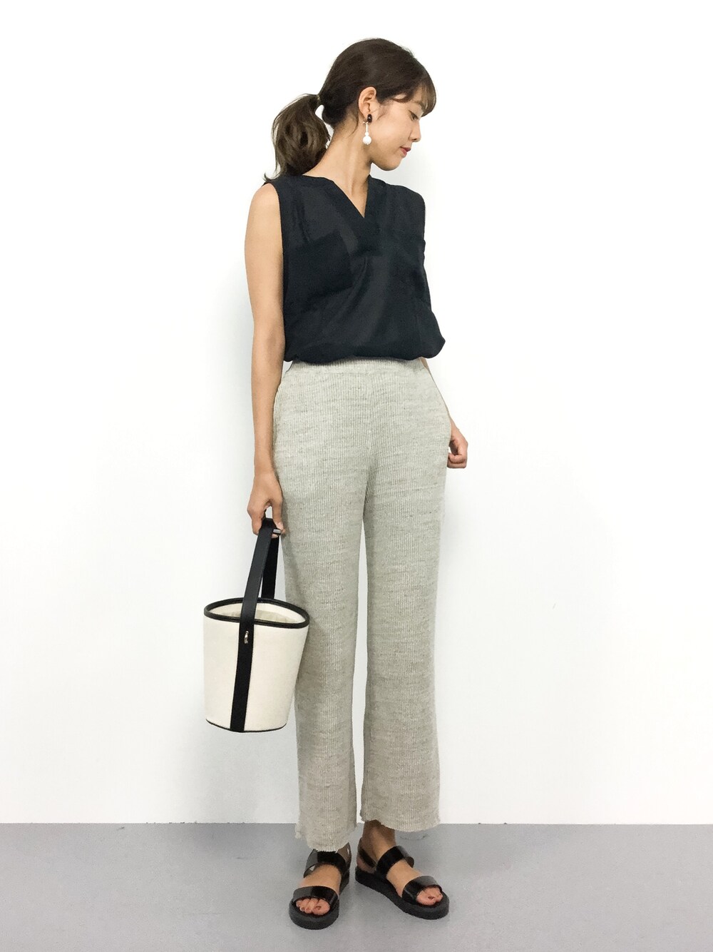 yuki(ZOZOTOWN)のシャツ/ブラウス「スキッパー裾タック後ろ長め胸ポケットノースリーブブラウス」を使ったコーディネート